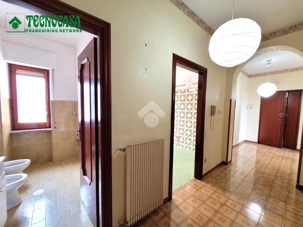 Airola – zona centrale, in vendita appartamento al secondo piano, composto da: ingresso con disimpegno, ampio soggiorno con balcone, cucina abitabile con accesso a un secondo balcone, due camere da letto matrimoniali (una con balcone), due bagni e due ripostigli. Completa la proprietà un box auto al piano seminterrato.